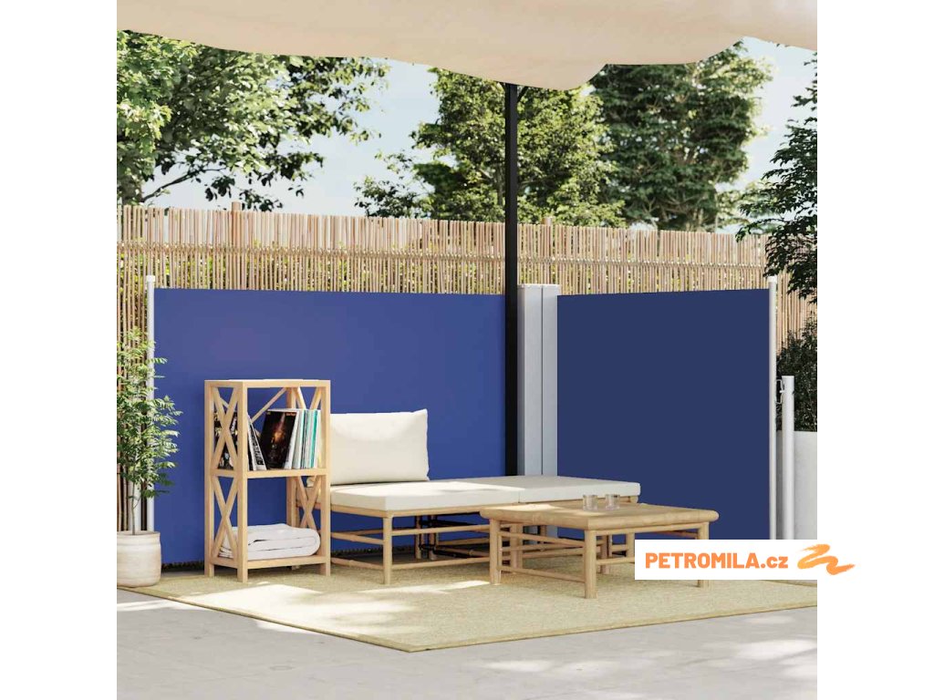 Zatahovací boční markýza / zástěna modrá 100 x 600 cm