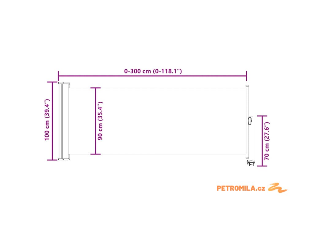 Zatahovací boční markýza / zástěna na terasu 100 x 300 cm hnědá