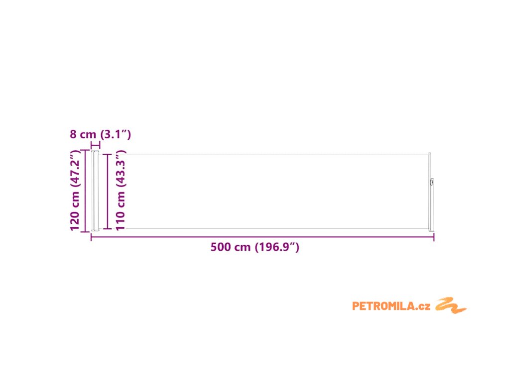 Zatahovací boční markýza/zástěna na terasu 120 x 500 cm krémová