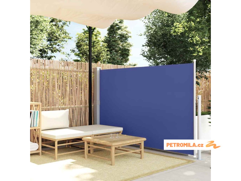 Zatahovací boční markýza/zástěna na terasu 140 x 500 cm modrá