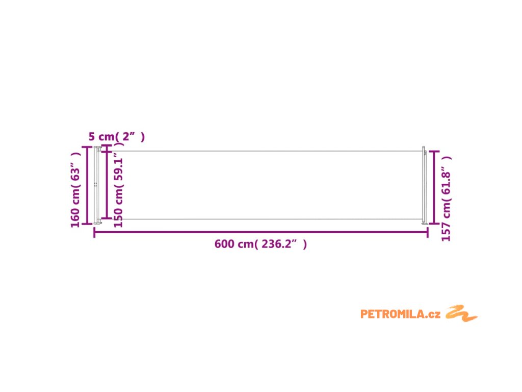 Zatahovací boční markýza/zástěna na terasu 160x600 cm krémová