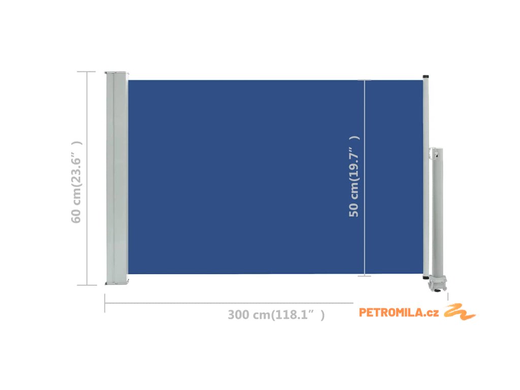 Zatahovací boční markýza / zástěna na terasu 60 x 300 cm modrá