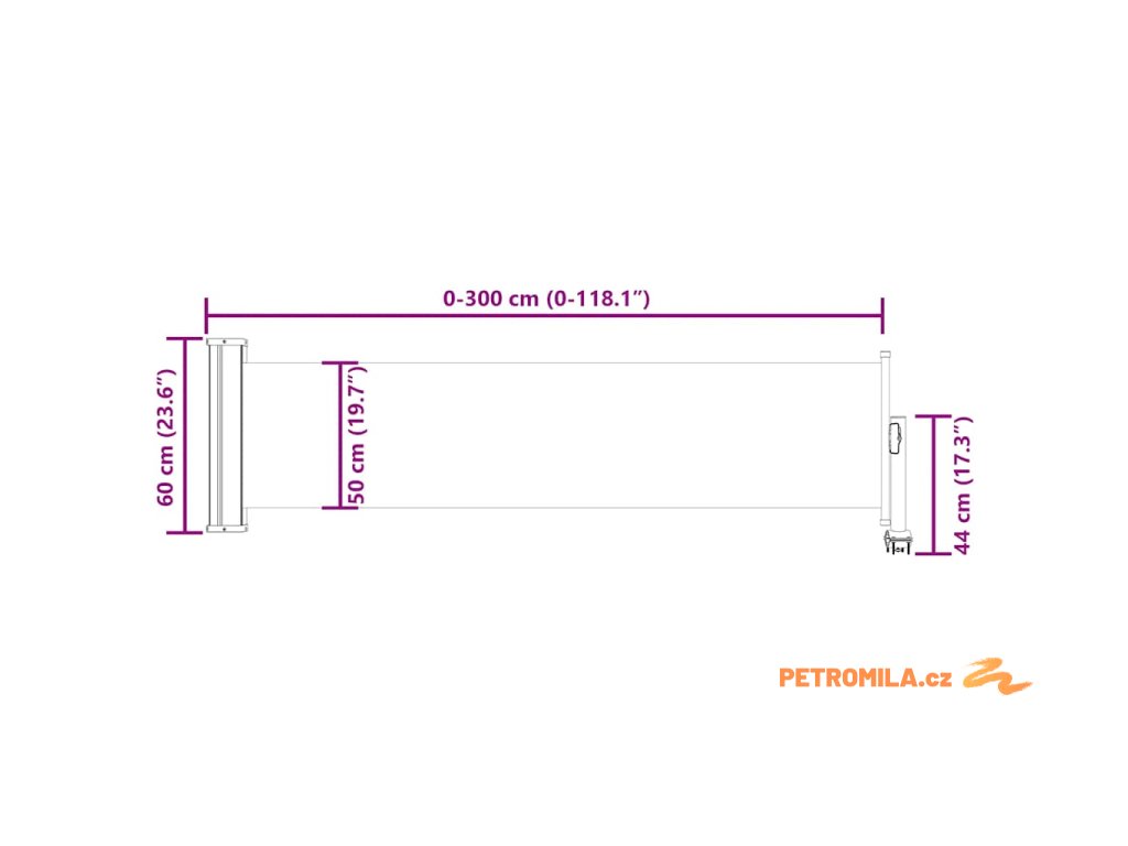 - Rozměry: 60 x (0–300) cm (V x Š)