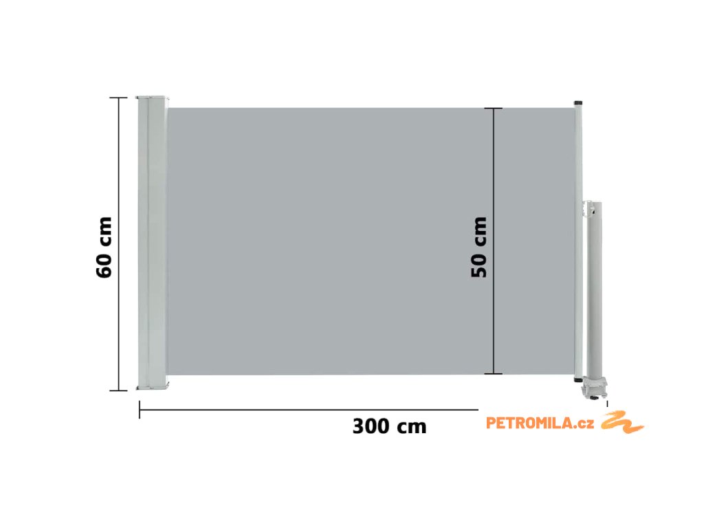 Zatahovací boční markýza / zástěna na terasu 60 x 300 cm šedá