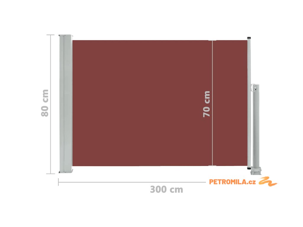 Zatahovací boční markýza / zástěna na terasu 80 x 300 cm hnědá