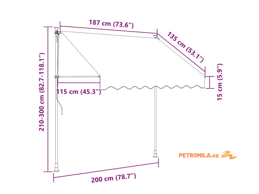 Zatahovací markýza antracitová 200 x 150 cm textil a ocel
