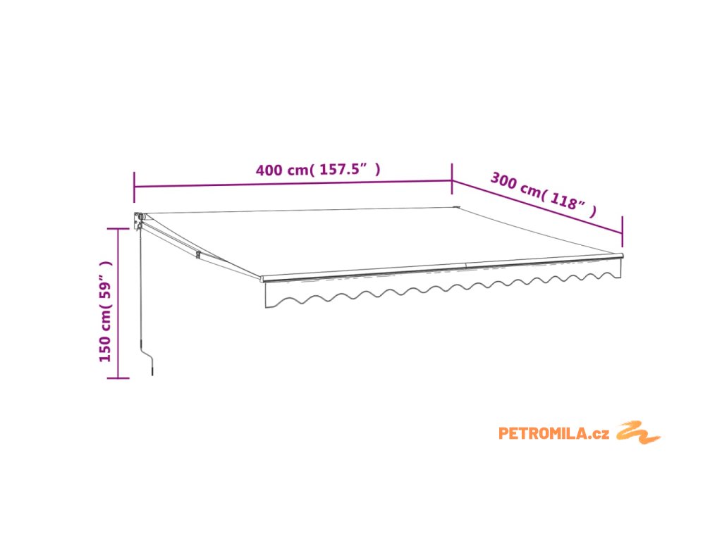 - Materiál markýzy: textil (100% polyester) s PU povlakem