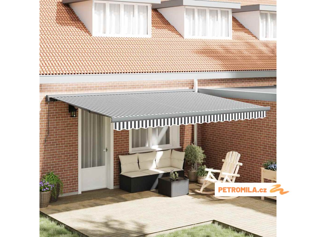 Zatahovací markýza antracitová a bílá 4,5 x 3 m textil a hliník