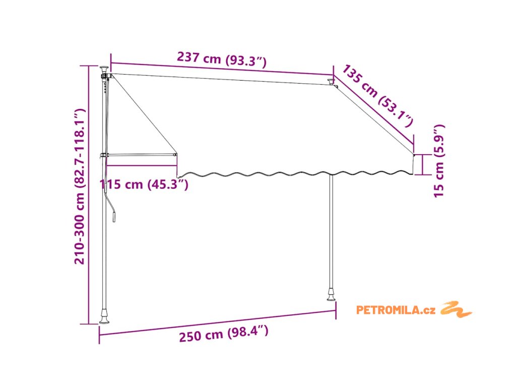- Materiál s dlouhou životností: Rám markýzy je vyroben z oceli, která je robustní a hodně toho vydrží. Tkanina s PU povrchovou úpravou je odolná proti UV záření. Ochrání vaši rodinu i hosty před UV zářením a oslňujícím slunečním světlem.