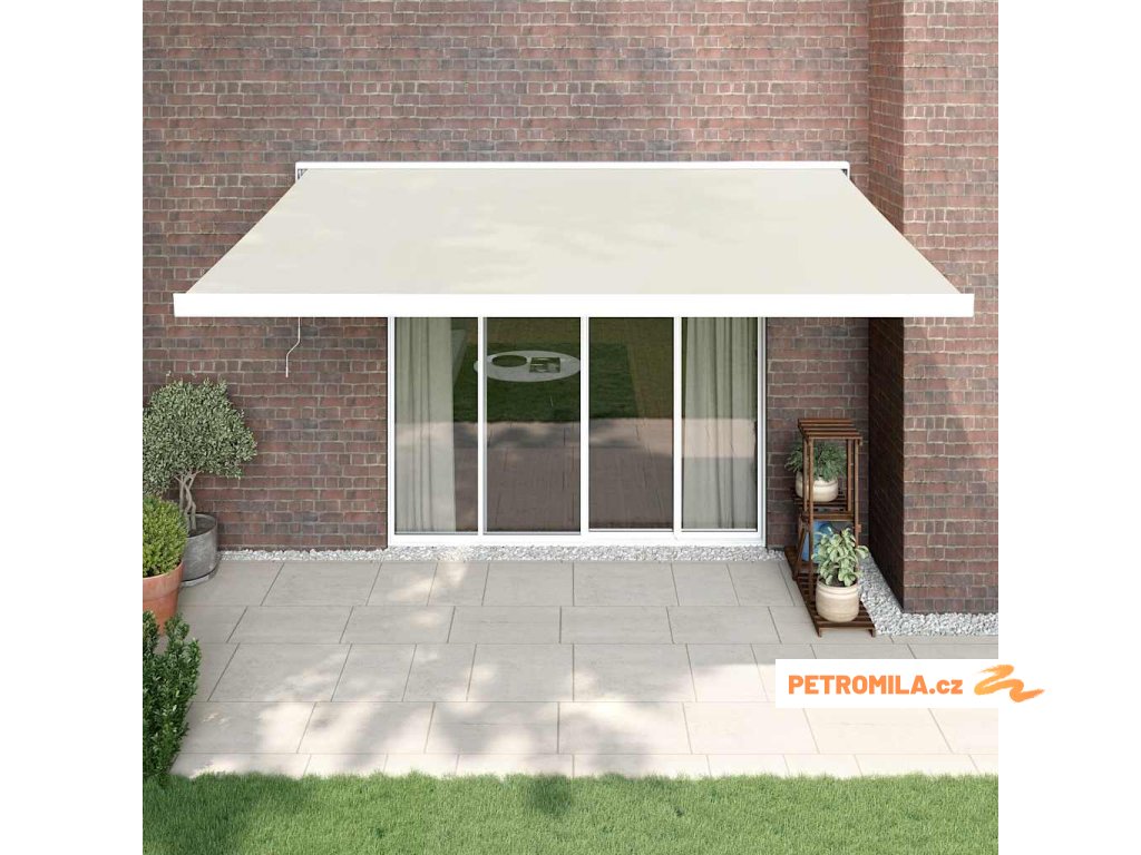 Zatahovací markýza krémová 4 x 3 m textil a hliník