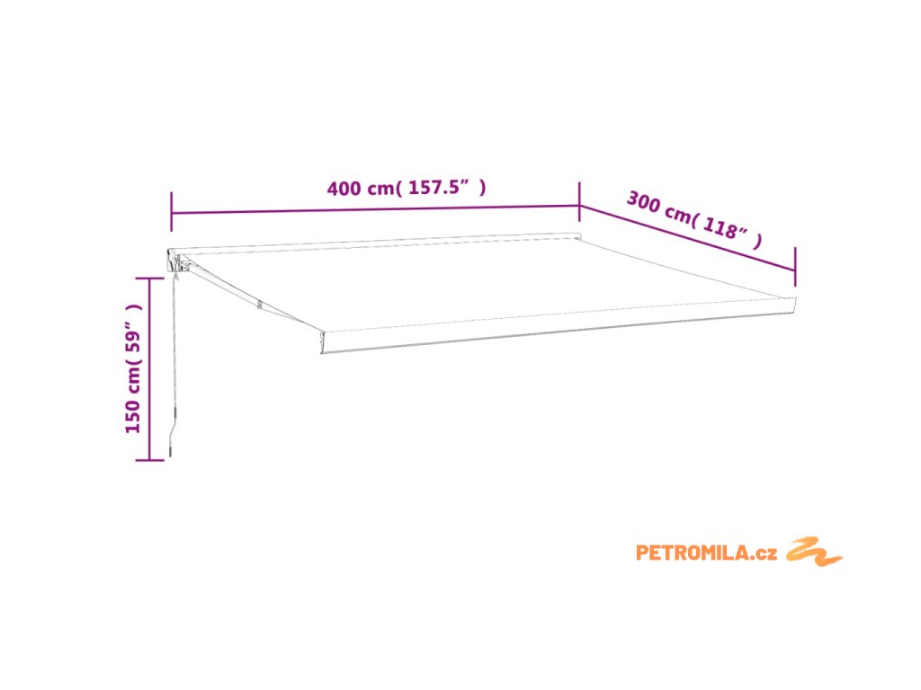 - Materiál markýzy: textil (100% polyester) s PU povlakem