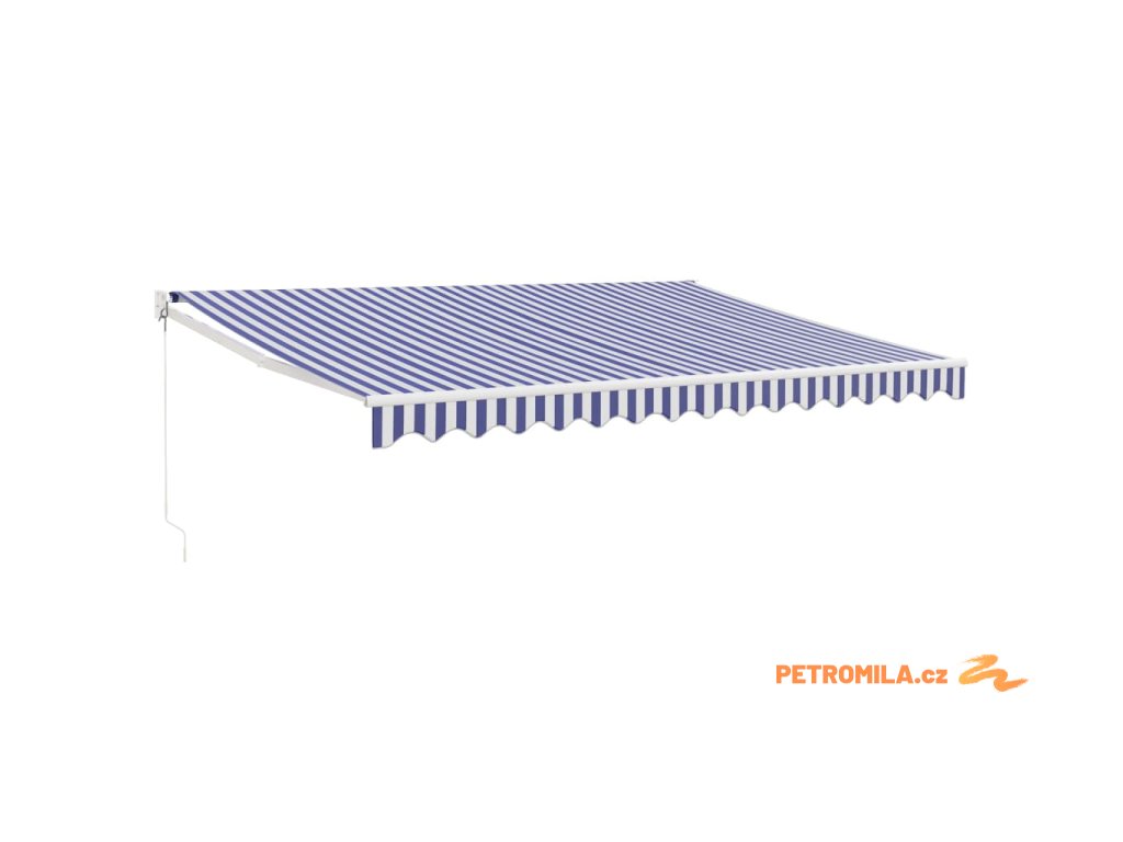 Zatahovací markýza modrá a bílá 4,5 x 3 m textil a hliník