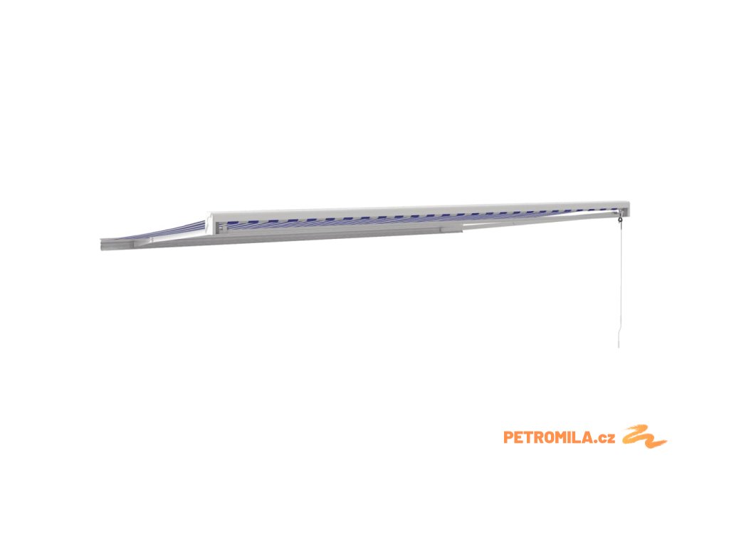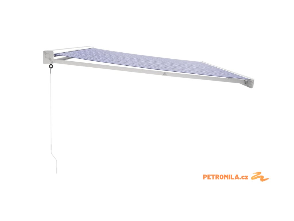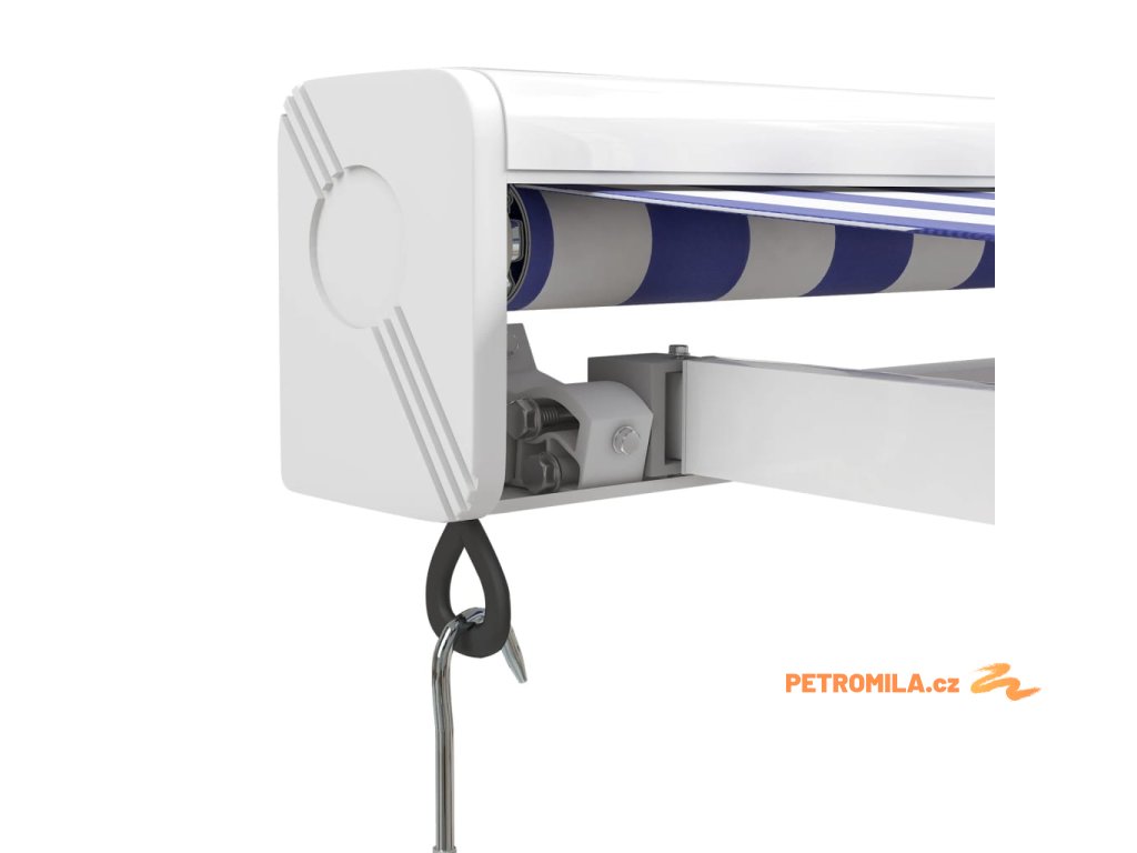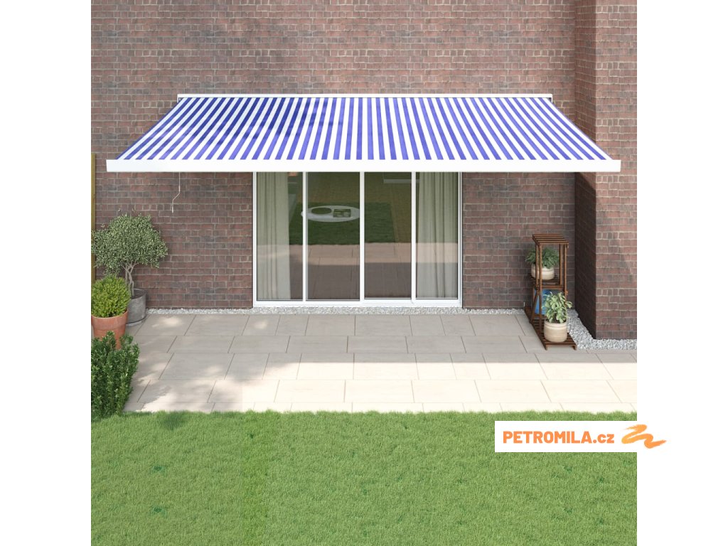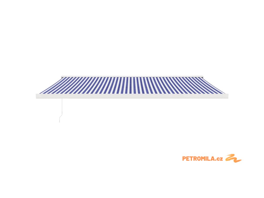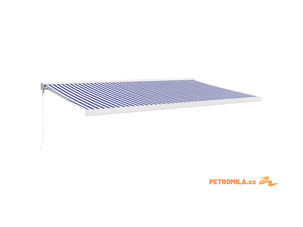 Zatahovací markýza modrá a bílá 5 x 3 m textil a hliník
