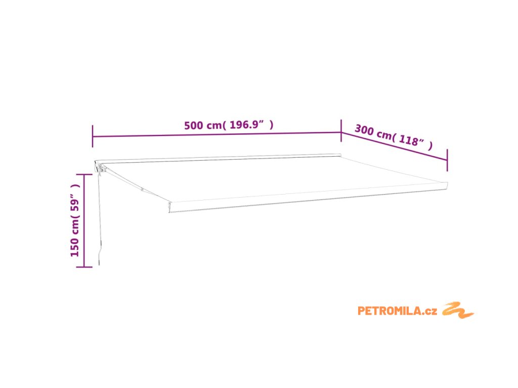 - Materiál markýzy: textil (100% polyester) s PU povlakem