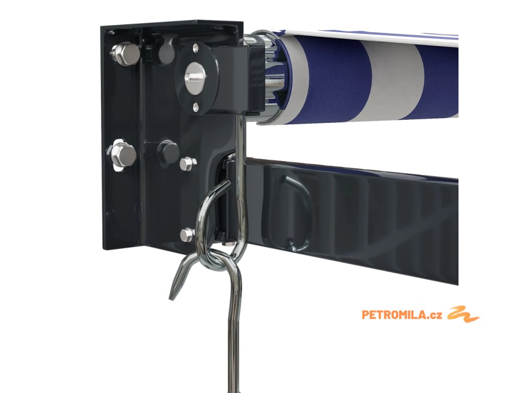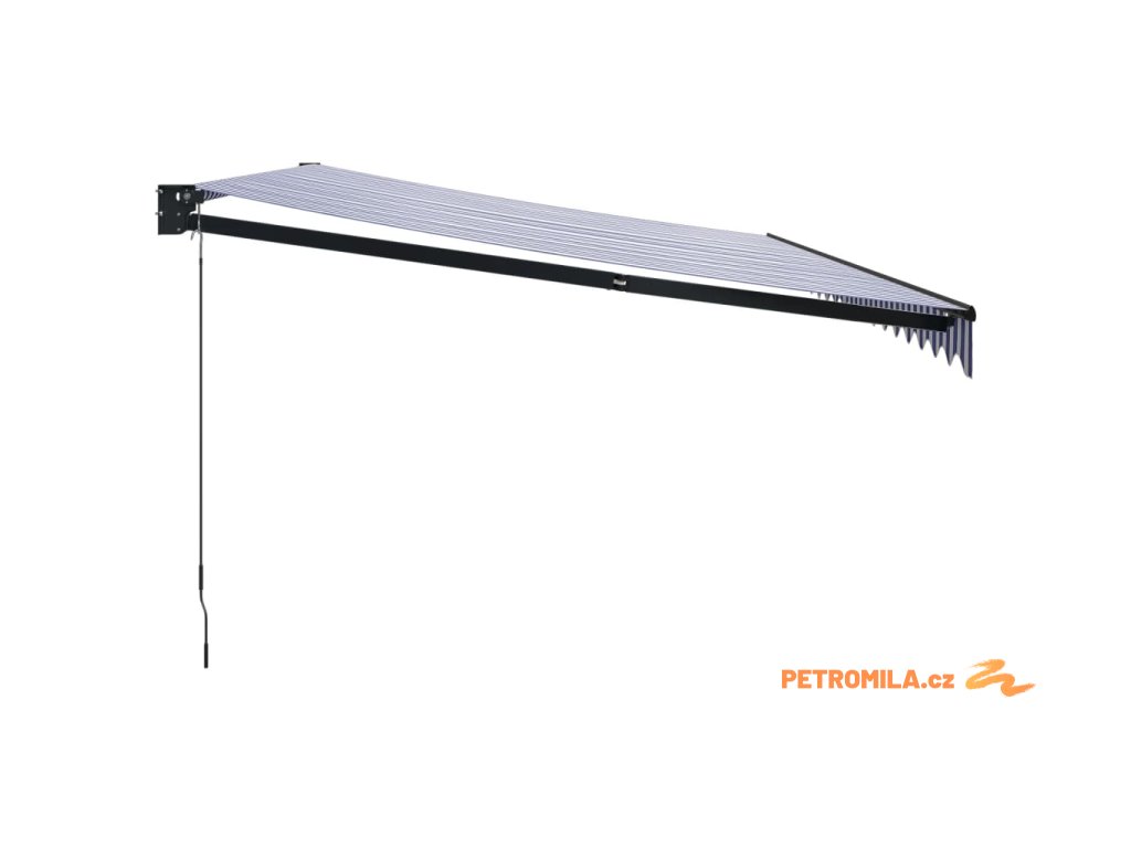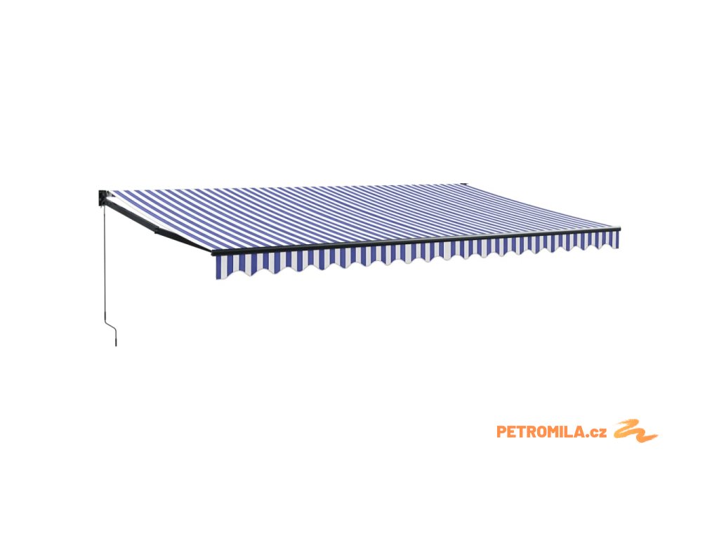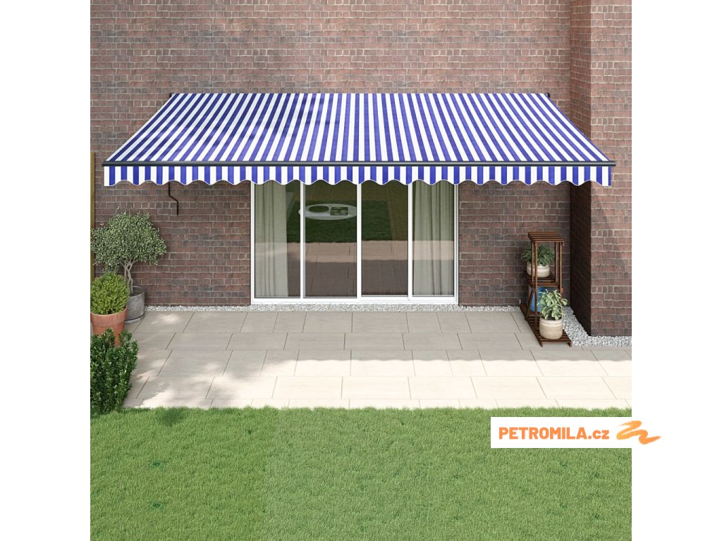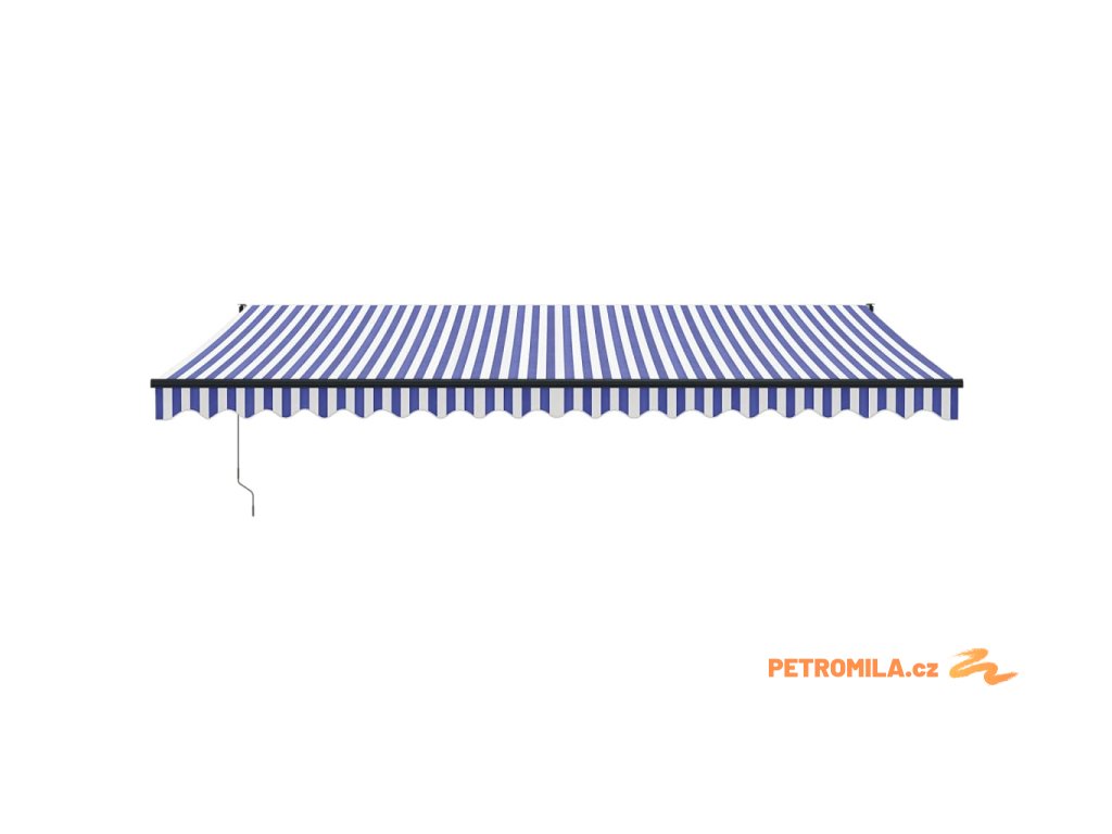Zatahovací markýza modrá a bílá 5 x 3 m textil a hliník