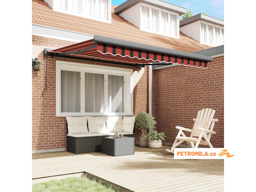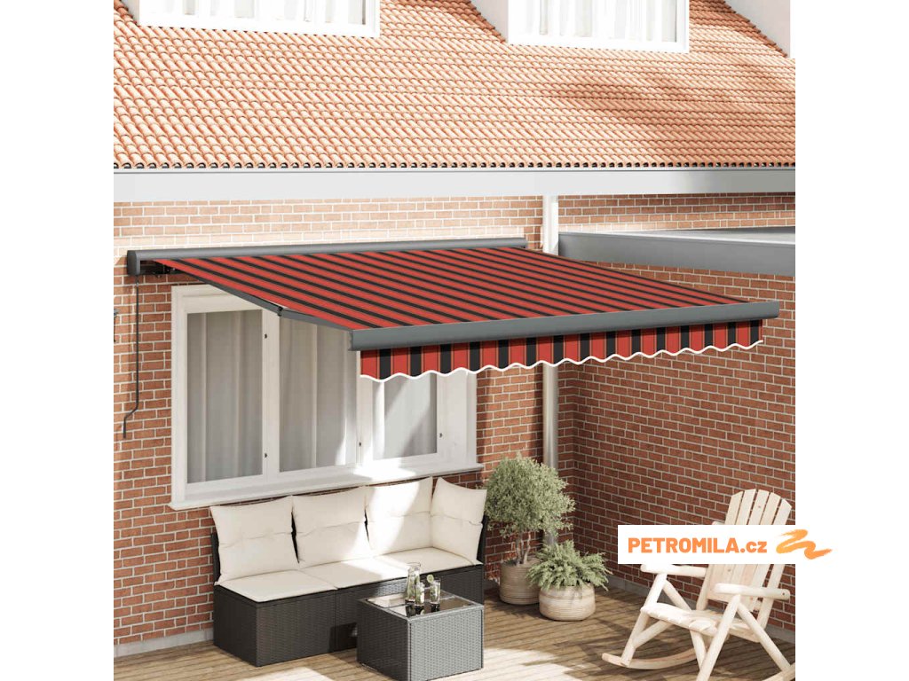 Zatahovací markýza oranžová a hnědá 3,5 x 2,5 m textil a hliník