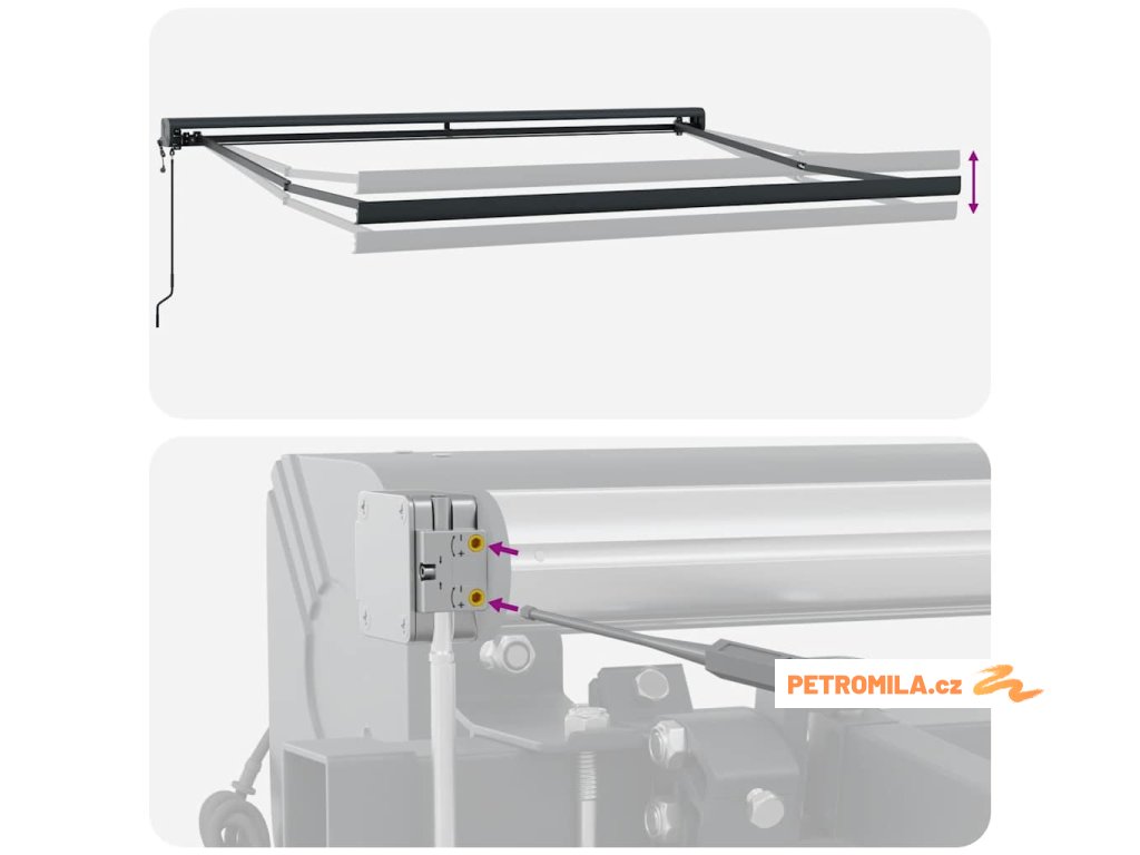 - Materiál s dlouhou životností: Rám markýzy je vyroben z práškově lakovaného hliníku, který je robustní a hodně toho vydrží. Tkanina s PU povrchovou úpravou je odolná proti UV záření. Ochrání vaši rodinu i hosty před UV zářením a oslňujícím slunečním světlem.