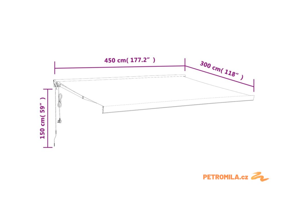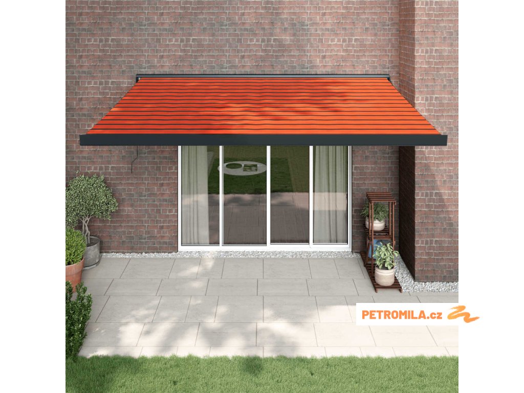 Zatahovací markýza oranžová a hnědá 4,5 x 3 m textil a hliník
