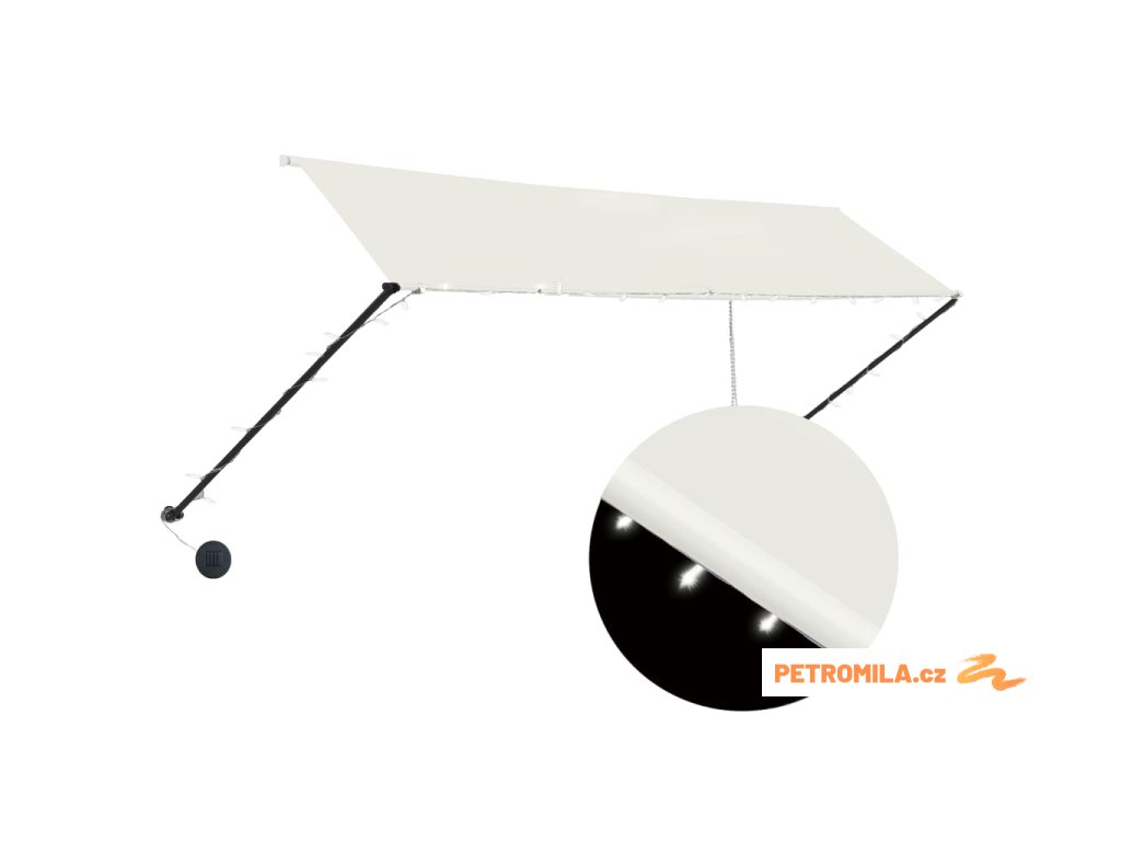Zatahovací markýza s LED světlem 350 x 150 cm krémová