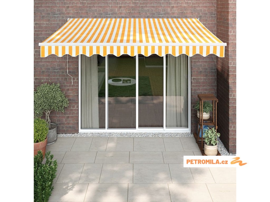 Zatahovací markýza žlutá a bílá 3,5 x 2,5 m textil a hliník