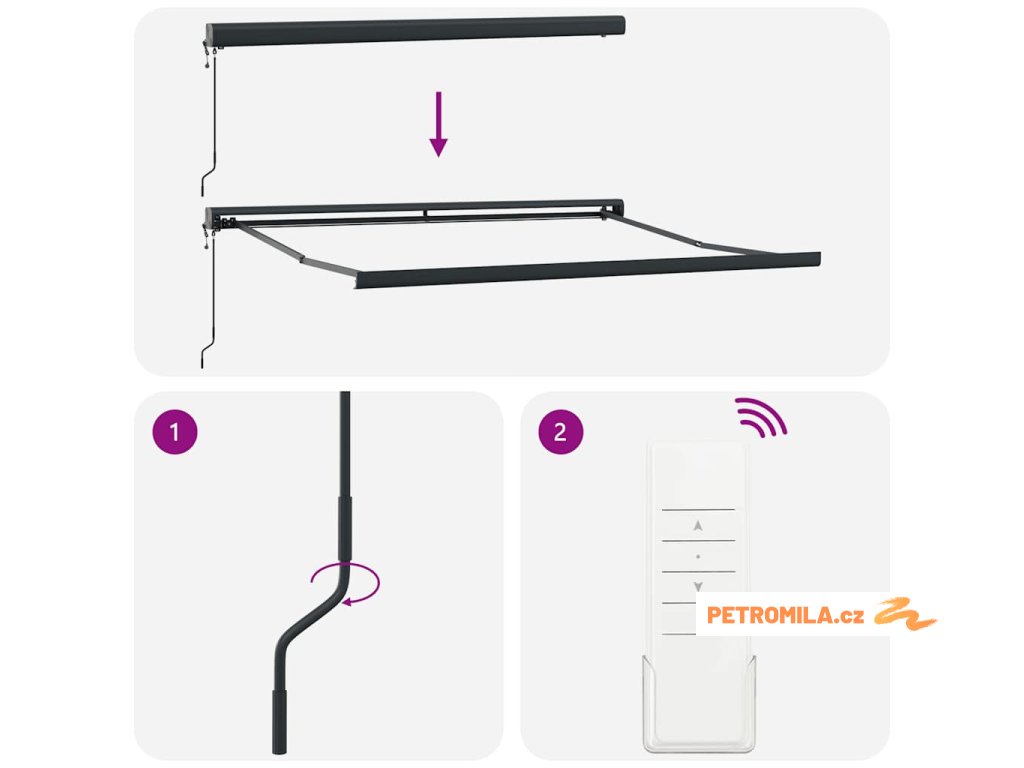 - Nástěnné provedení: Zatahovací stříšku lze snadno připevnit na stěnu pomocí přiložených nástěnných držáků a nezabírá tak žádné místo na podlaze.