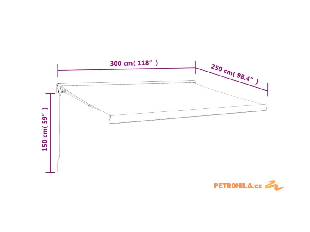 - Materiál markýzy: textil (100% polyester) s PU povlakem