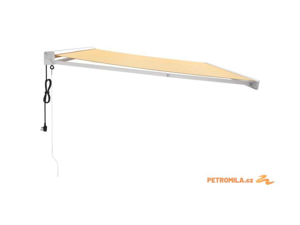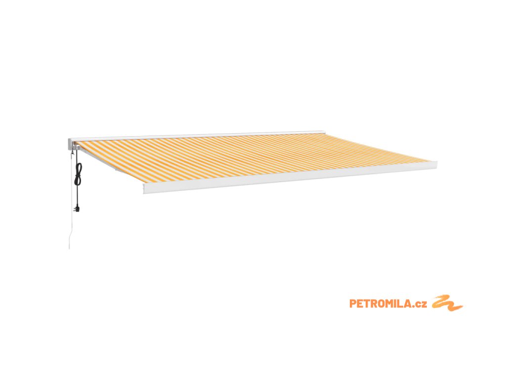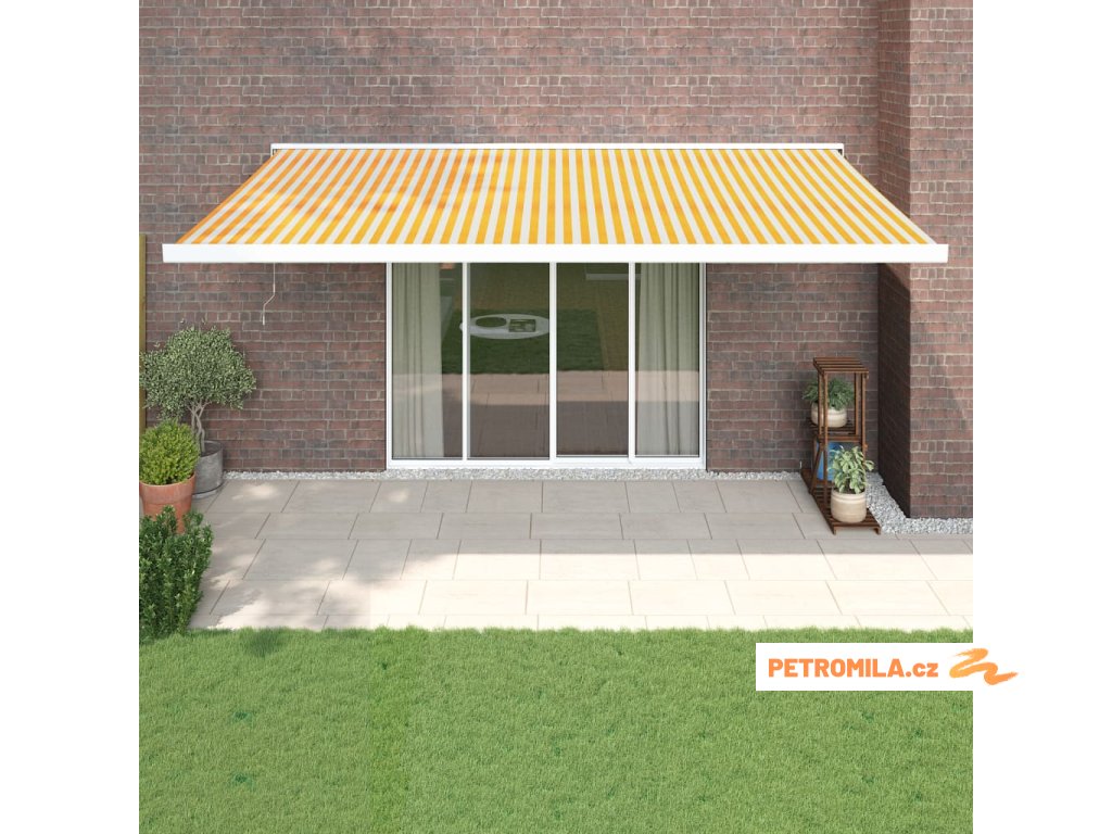 Zatahovací markýza žlutá a bílá 5 x 3 m textil a hliník