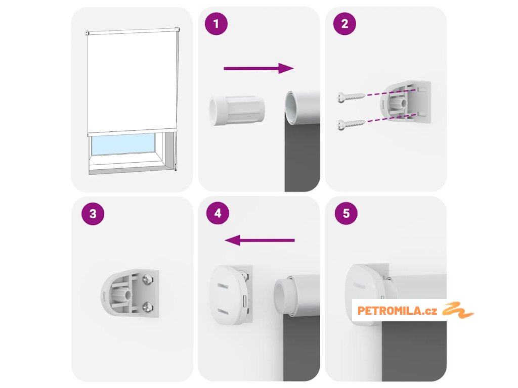 Díky zahrnutému montážnímu příslušenství, se tyto rolety snadno instalují a používají. Buď instalujte roletu na zeď nebo strop pomocí šroubů a hmoždinek, které jsou součástí balení nebo ji zavěste na okno. Tažný řetízek může být namontován buď na levou nebo na pravou stranu.