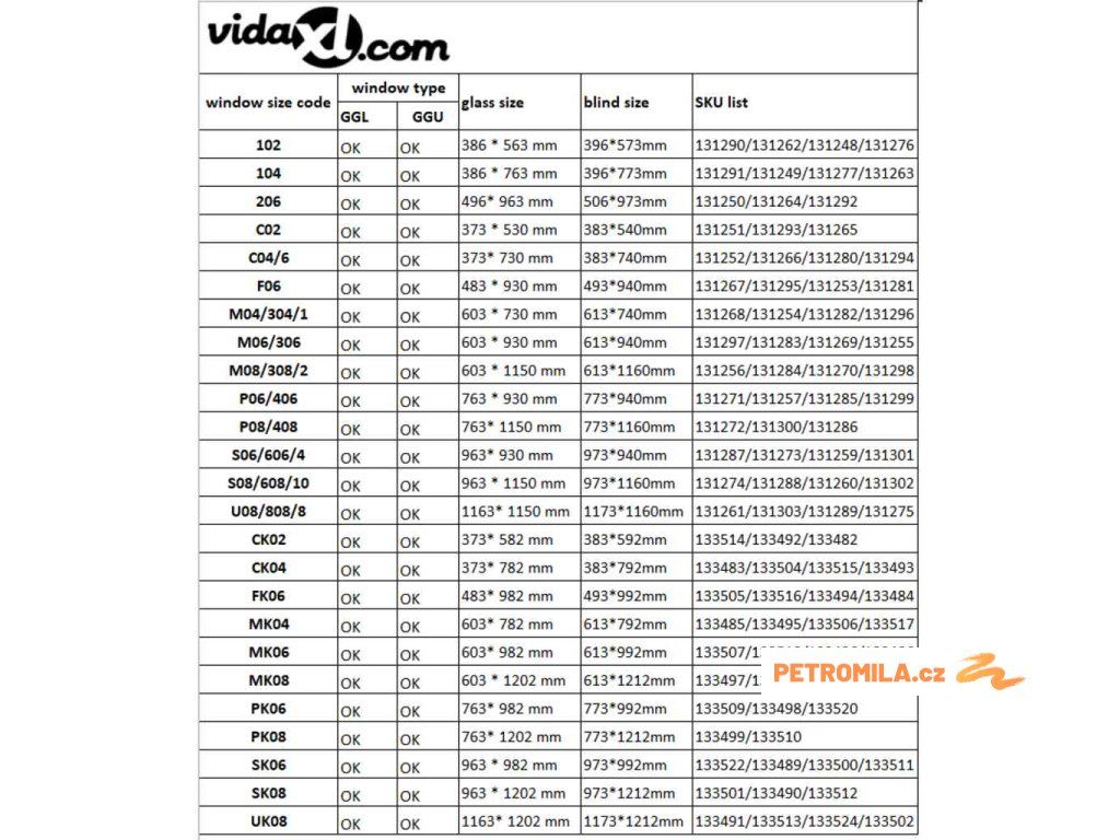 - 2. Kód velikosti okna P06/406 pasuje pouze na kód velikosti P06/406; Nepasuje na kód velikosti PK06 okna VELUX.