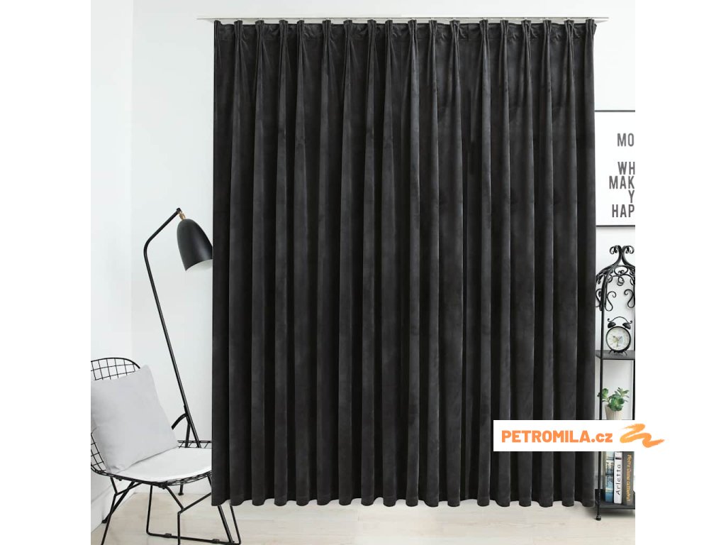 Zatemňovací závěs s háčky sametový antracitový 290 x 245 cm