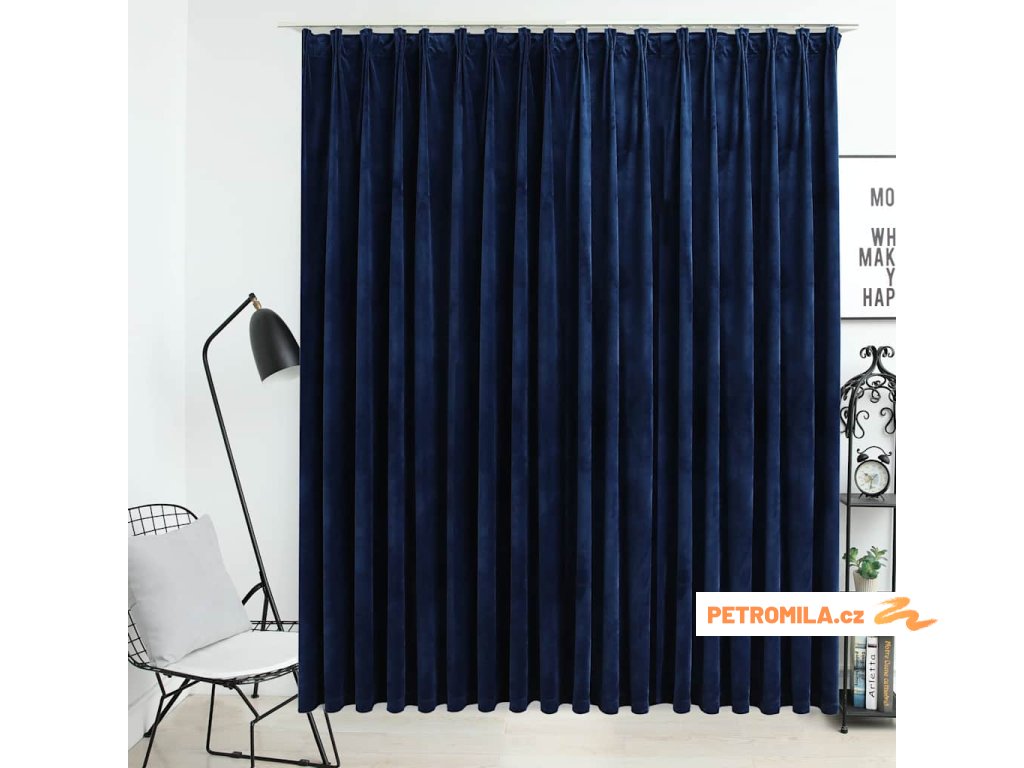 Zatemňovací závěs s háčky sametový tmavě modrý 290 x 245 cm