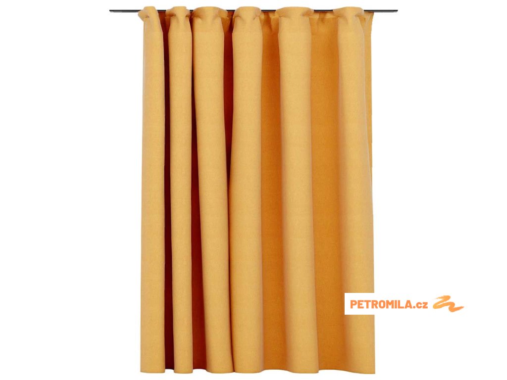 Zatemňovací závěs s háčky vzhled lnu žlutý 290 x 245 cm