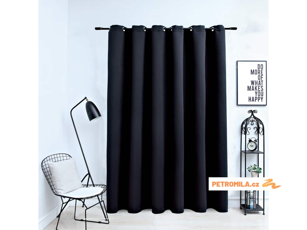 Zatemňovací závěs s kovovými kroužky černý 290 x 245 cm