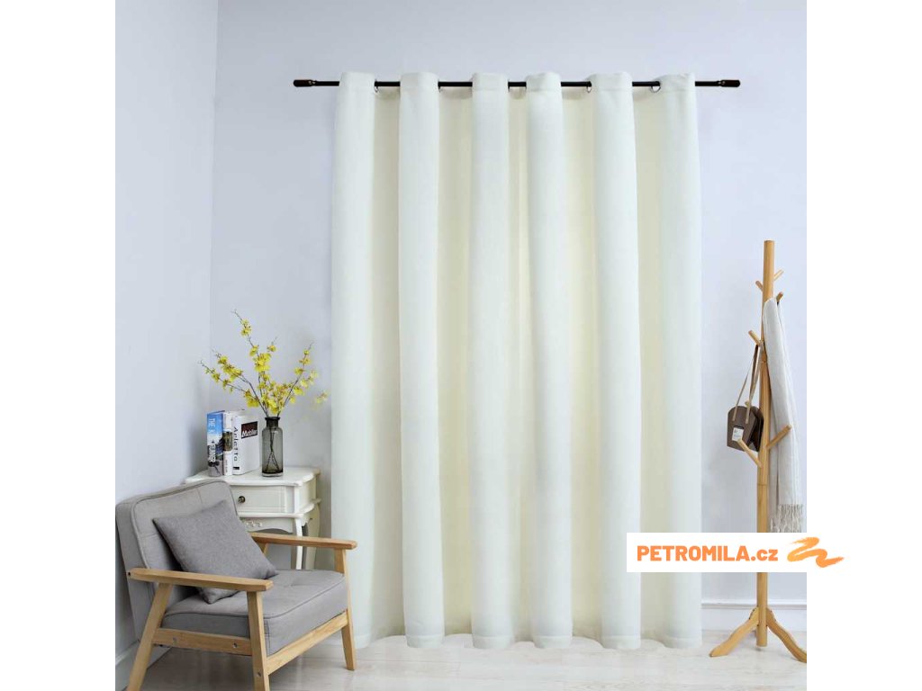 Zatemňovací závěs s kovovými kroužky sametový krémový 290x245cm