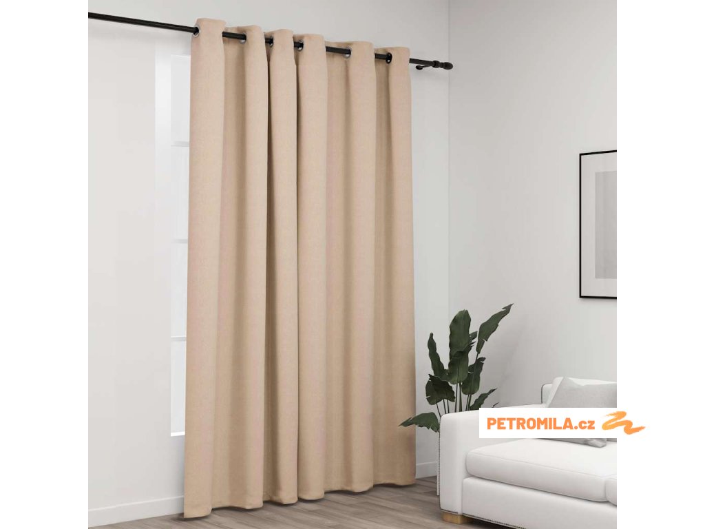 Zatemňovací závěs s kroužky vzhled lnu béžový 290 x 245 cm