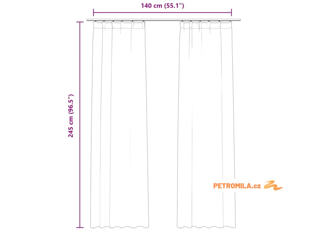 Sametová látka dodá vašemu interiéru hřejivou atmosféru. Jelikož jsou závěsy opatřené kovovými háčky, bez námahy je pověsíte na záclonovou kolejnici. Navíc je lze prát v pračce.