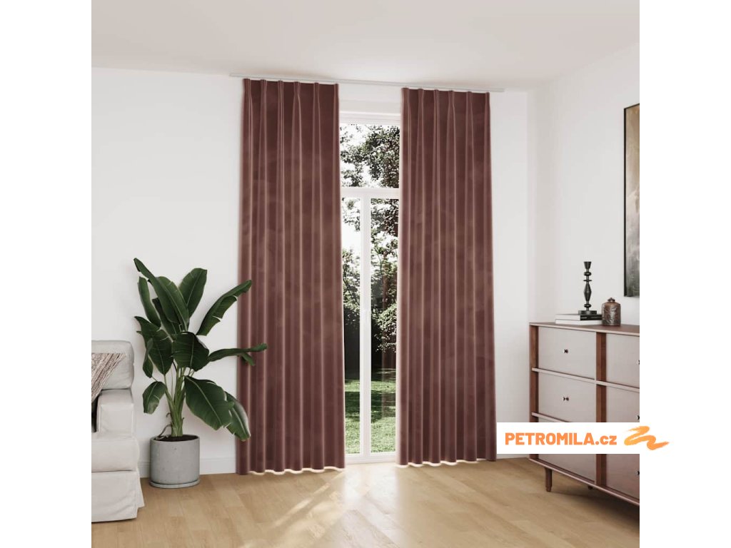 Zatemňovací závěsy s háčky 2 ks samet starorůžové 140x245 cm