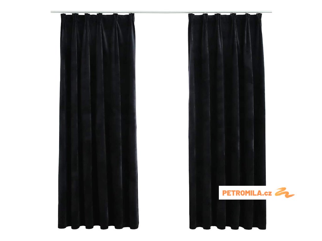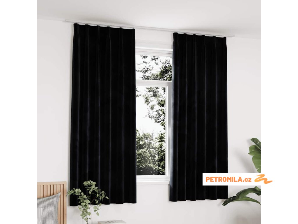 Zatemňovací závěsy s háčky 2 ks sametové černé 140 x 175 cm