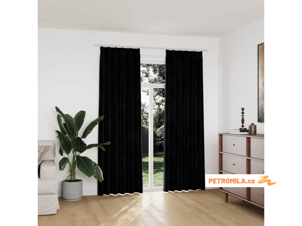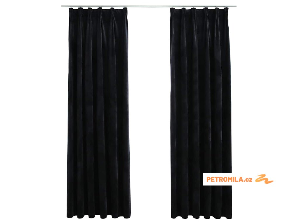 Zatemňovací závěsy s háčky 2 ks sametové černé 140 x 225 cm