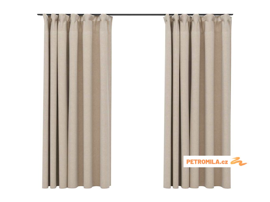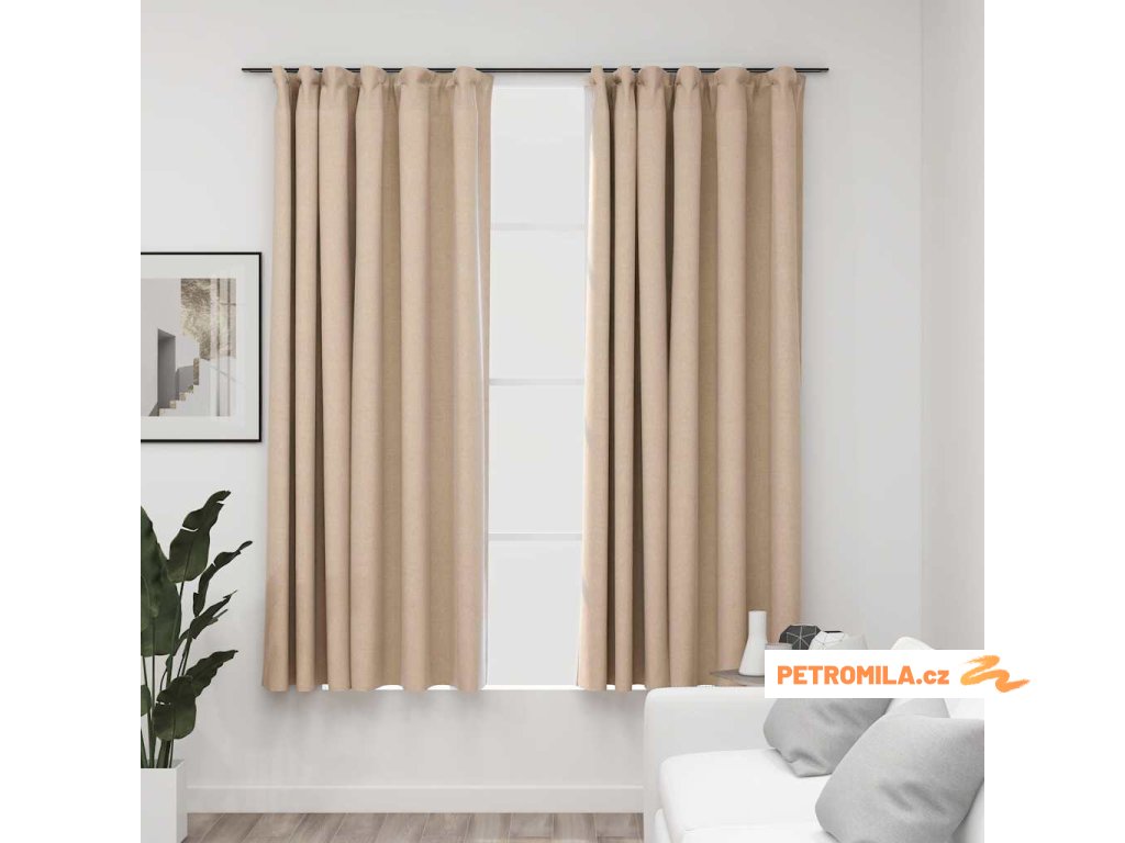 Zatemňovací závěsy s háčky vzhled lnu 2 ks béžové 140 x 175 cm