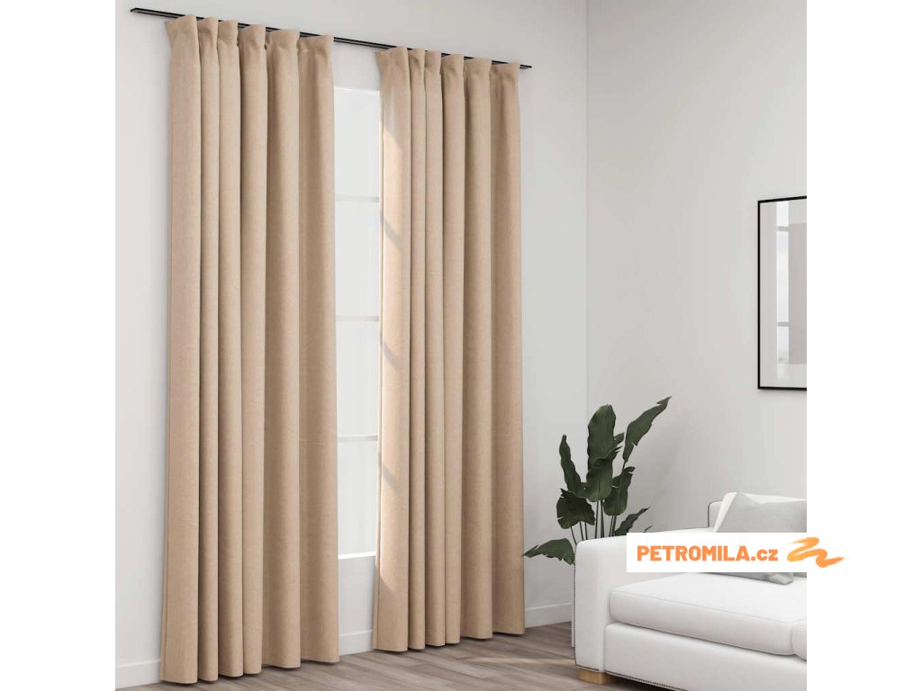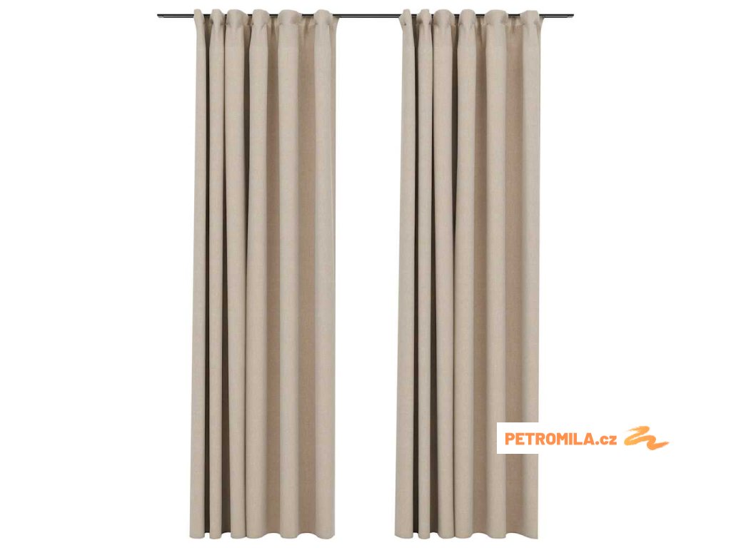Zatemňovací závěsy s háčky vzhled lnu 2 ks béžové 140 x 225 cm