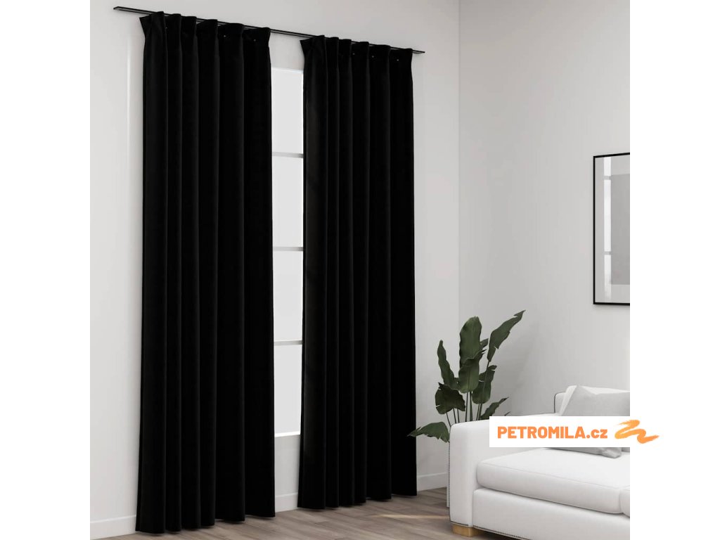 Zatemňovací závěsy s háčky vzhled lnu 2 ks černé 140 x 225 cm