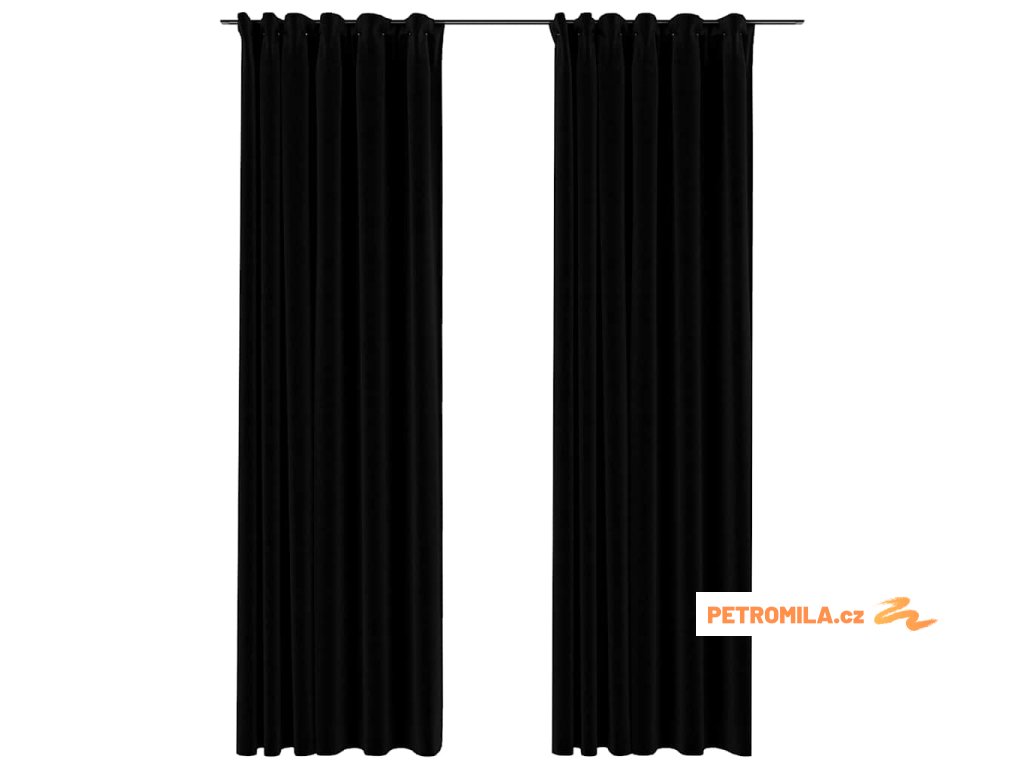 Zatemňovací závěsy s háčky vzhled lnu 2 ks černé 140 x 245 cm
