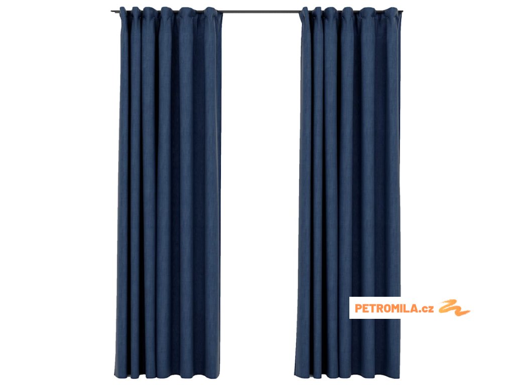 Zatemňovací závěsy s háčky vzhled lnu 2 ks modré 140 x 225 cm