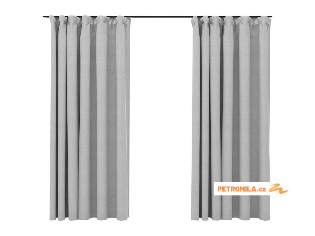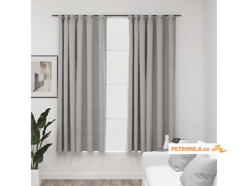 Zatemňovací závěsy s háčky vzhled lnu 2 ks šedé 140 x 175 cm