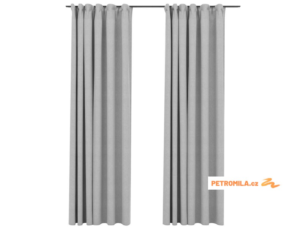 Zatemňovací závěsy s háčky vzhled lnu 2 ks šedé 140 x 225 cm