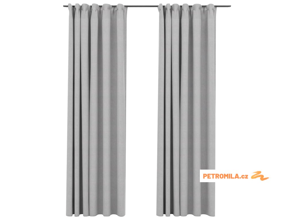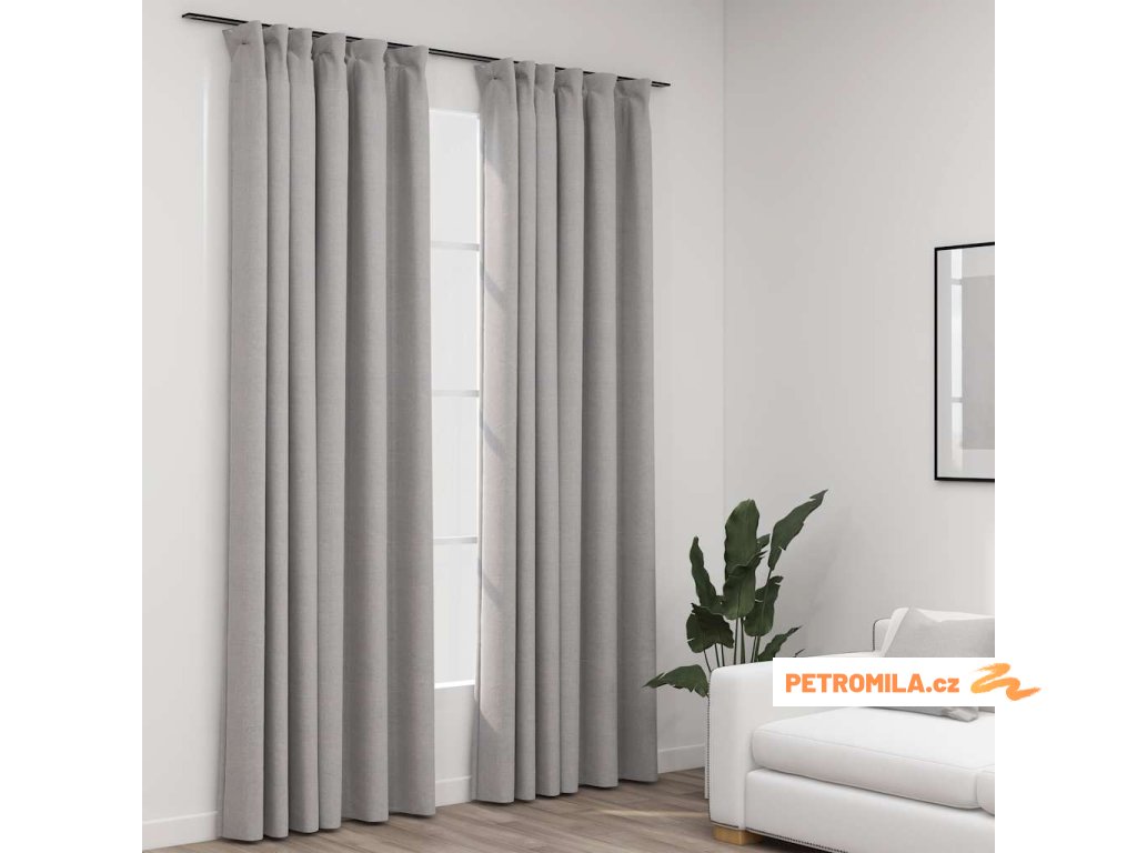 Zatemňovací závěsy s háčky vzhled lnu 2 ks šedé 140 x 245 cm