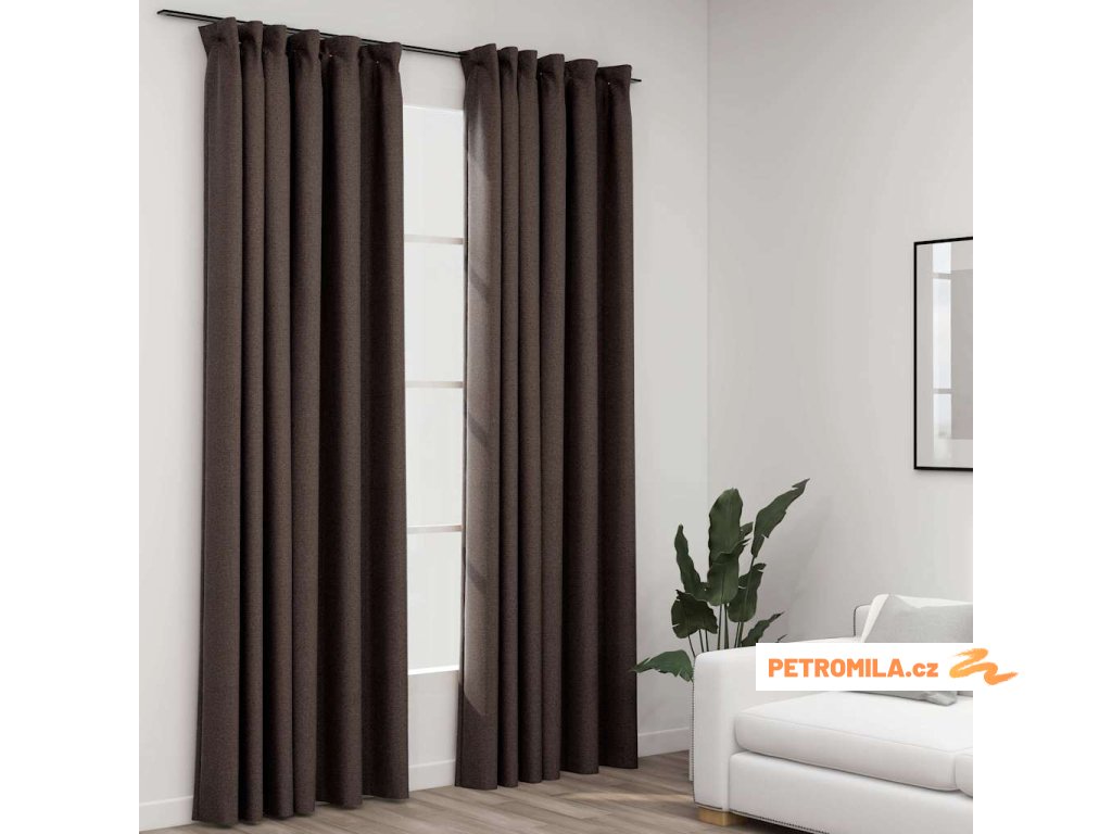 Zatemňovací závěsy s háčky vzhled lnu 2 ks taupe 140 x 245 cm