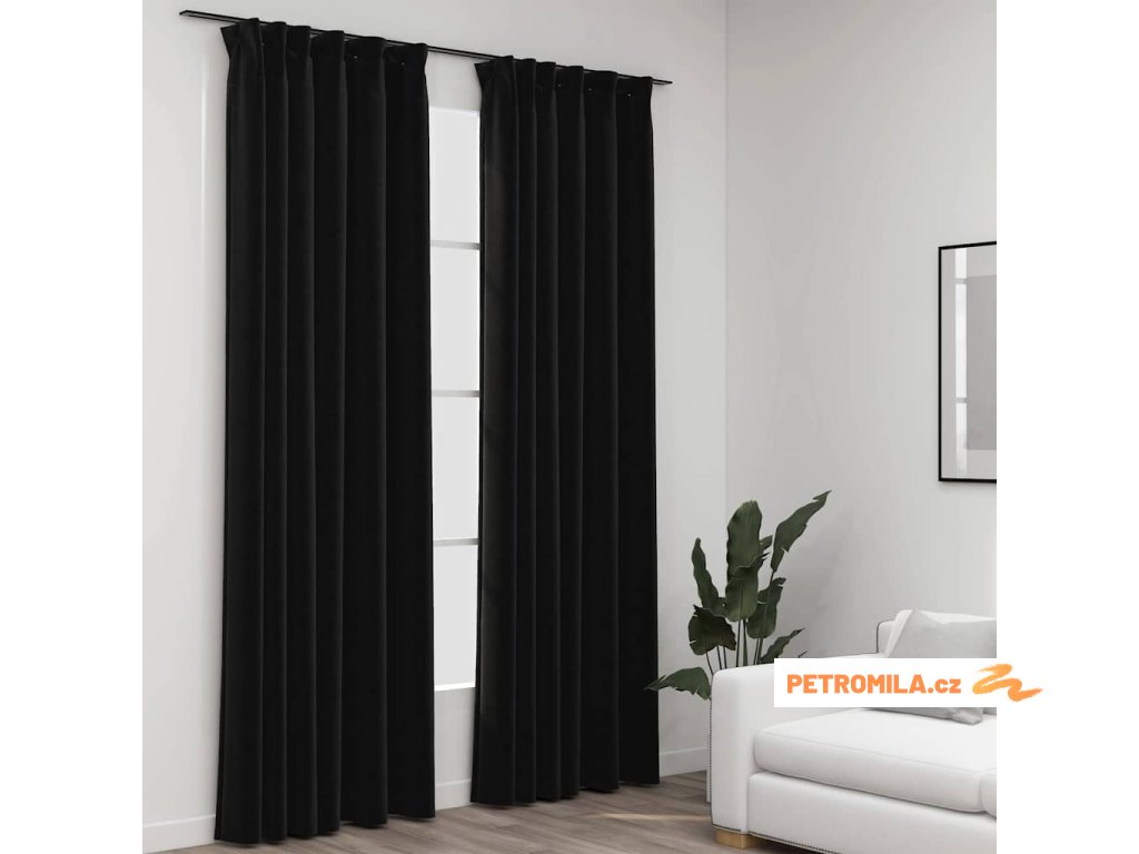 Zatemňovací závěsy s háčky vzhled lnu 2ks antracitové 140x245cm