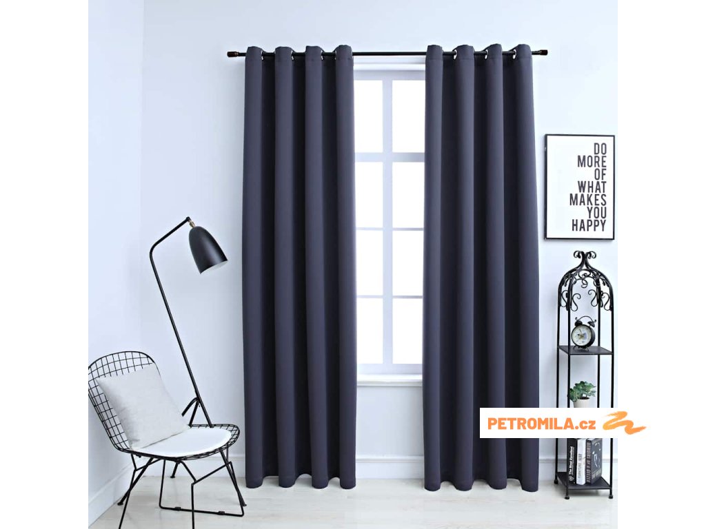 Zatemňovací závěsy s kovovými kroužky 2 ks antracit 140x225 cm